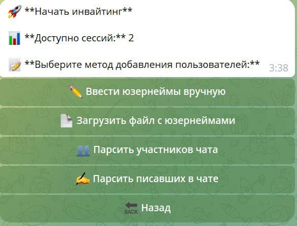- Загрузка своих ссылок для инвайтинга
