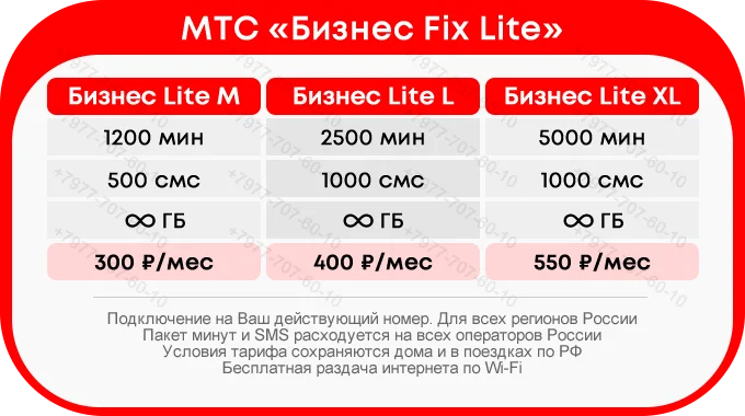 МТС Бизнес Fix Lite. Тариф на ваш номер