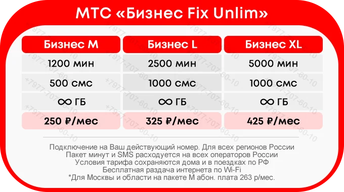 МТС Бизнес Fix Unlim. Тариф на ваш номер