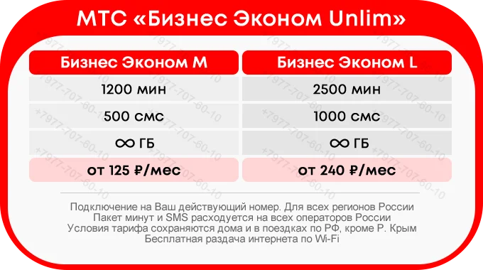 МТС Бизнес Эконом Unlim. Тариф на ваш номер