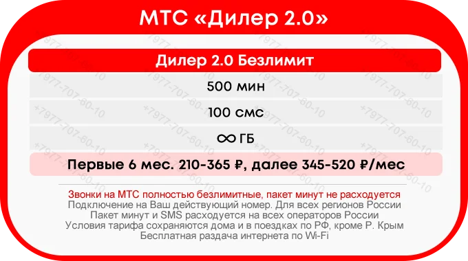 МТС Дилер 2.0 Безлимит. Тариф на ваш номер